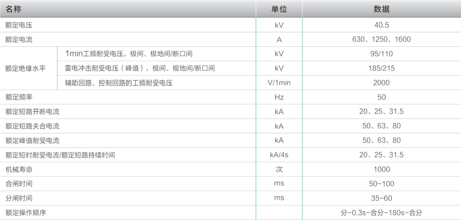 ZN85-40.5型断路器配弹簧操动机构(一体)技术参数
